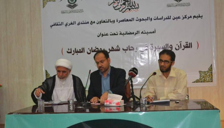 أقام مركز عين للدراسات والبحوث المعاصرة في النجف الأشرف وبالتعاون مع منتدى الغري الثقافي أمسيته الرمضانية تحت عنوان (القرآن والسيرة في رحاب شهر رمضان المبارك).