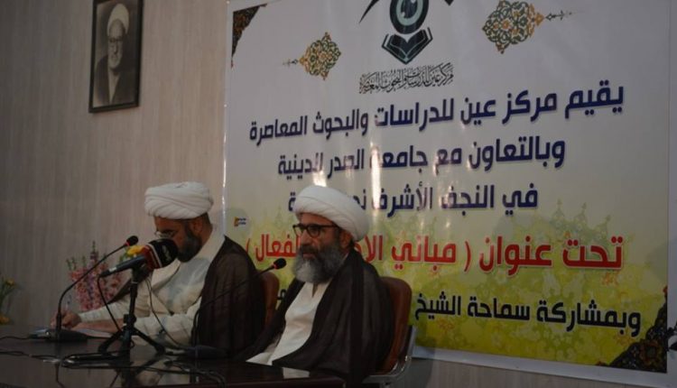 اقام مركز عين للدراسات والبحوث المعاصرة وبالتعاون مع جامعة الصدر الدينية في النجف الأشرف ندوة علمية تحت عنوان (مباني الفقه الفعال) وبمشاركة سماحة آية الله الشيخ علي اكبر السيفي المازندراني وهو أحد